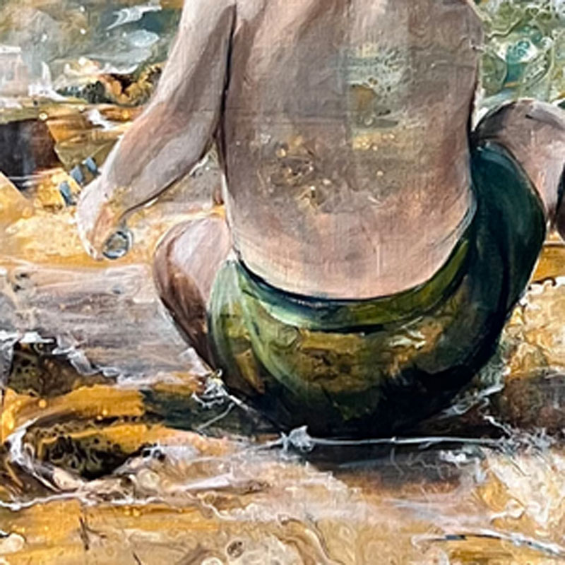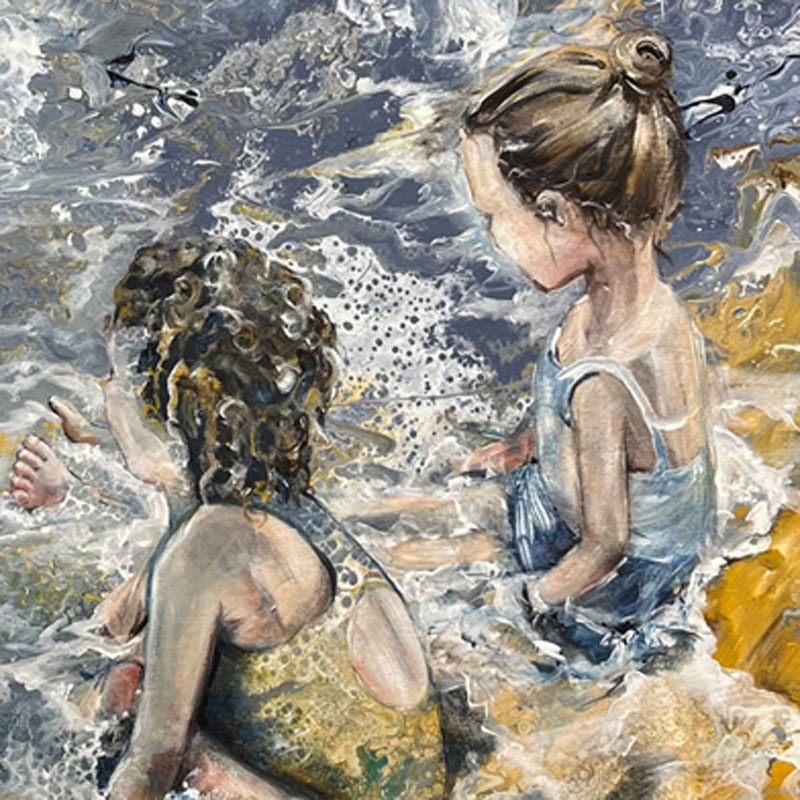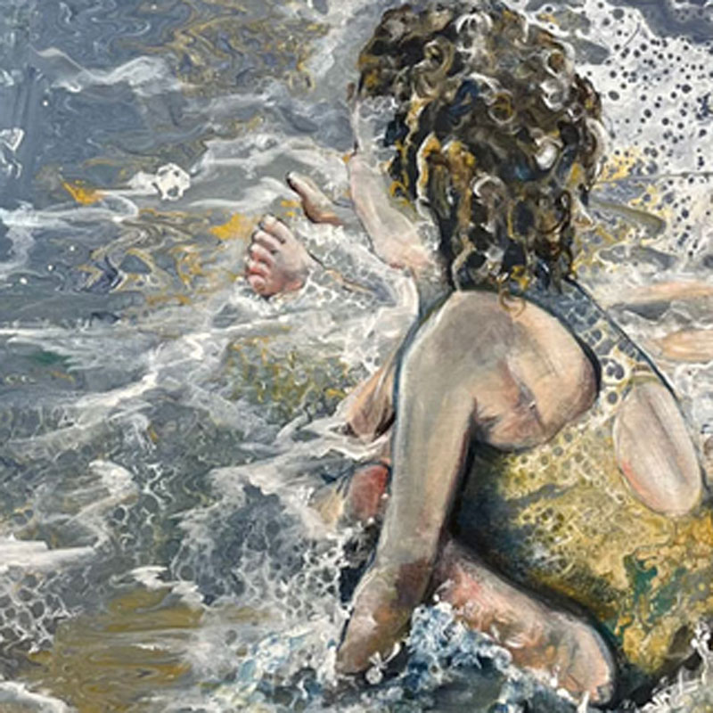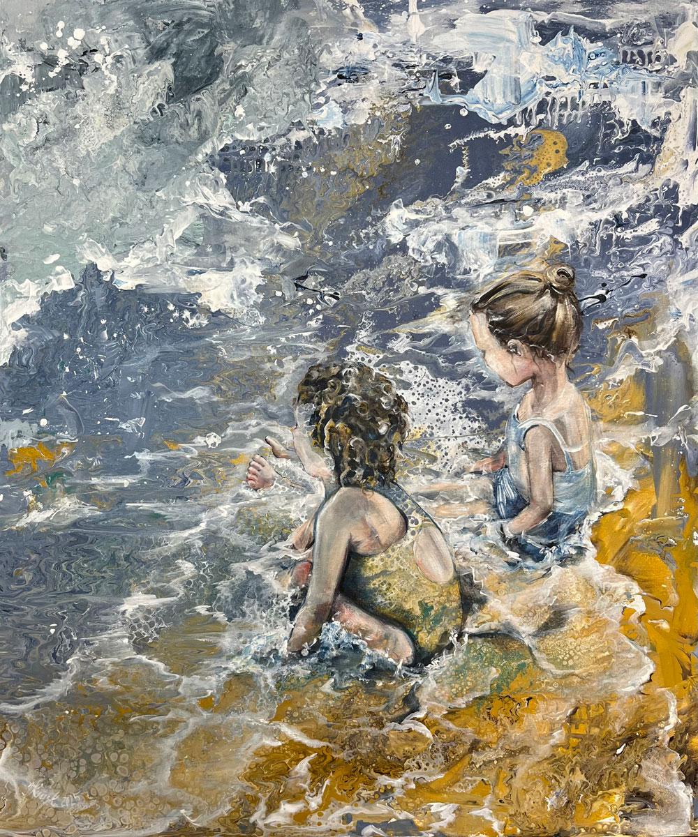 „Voolamise teine viis“ avab sama teema teise külje. Meri on türkiissinine, kontrastid tugevamad ja laste riietes rohkem värvi. Töö on erksam, kirkam ja mängulisem – vool, mis liigub uues rütmis, erinevalt esimesest maalist.